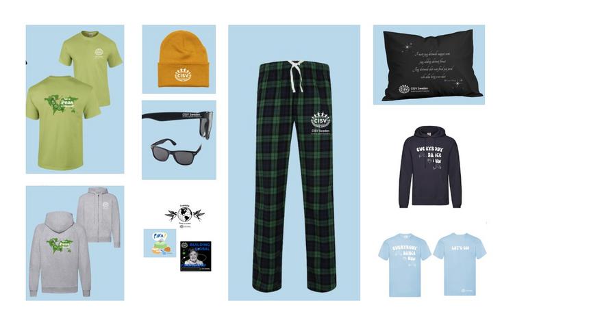 Skicka ett mail till hanna.leidstedt@cisv.se med din beställning. Vi har följande produkter du kan köpa: